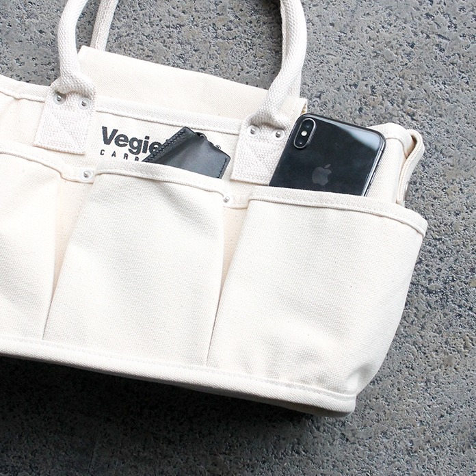 VeigeBAGは朝市やファーマーズマーケットで買った野菜をポケットに入れてお買い物して帰宅後もそのまま「見せる収納」としても使用できるショッピングストレージバッグです。