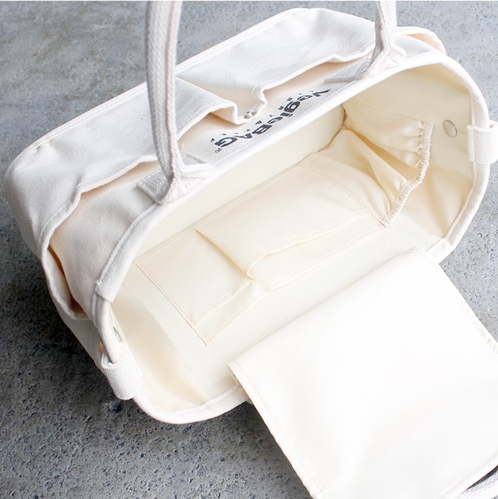 片手で簡単に使える、フラップ(ふたのようなもの)がついたベジバッグフラップです。
