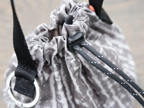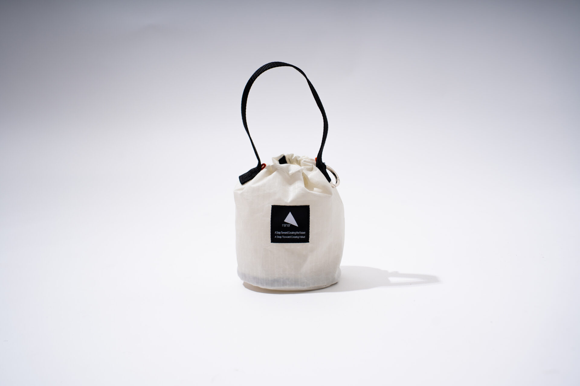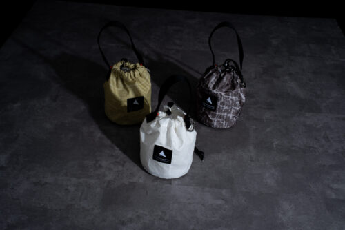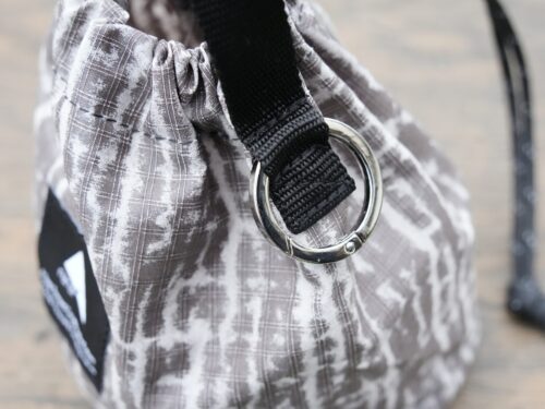 セイルクロスを用いたバケット型バッグは、ドローコードで巾着のように絞り込める仕様で、カラビナリングが付属することからキーケースなど自分なりの使用方法でお使いいただけます。